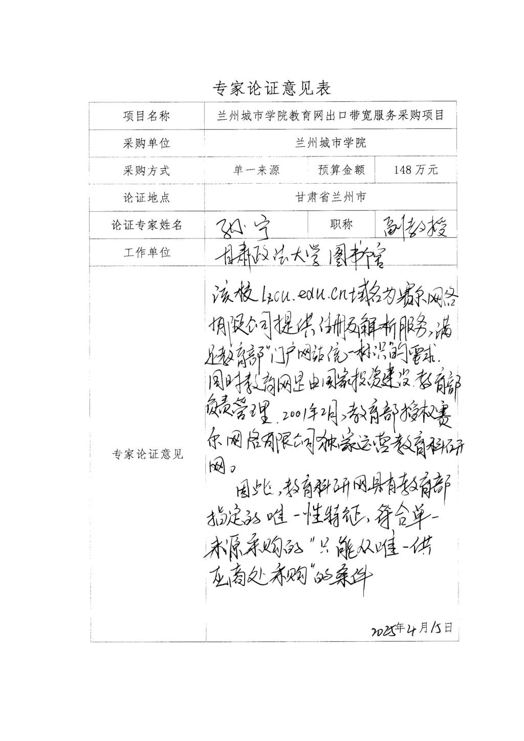 五、采用单一来源采购方式的原因:beat365官方网站接入的中国教育和科研计算机网(CERNET)是一张公益性的网络,教育科研网为beat365官方网站提供IP v4/IPv6带宽接入服务,满足学校访问国内国际的各项学术需求,beat365官方网站教育网出口及分配的lzcu.edu.cn域名、8192个IPv4地址和1段::/48位的IPv6地址已在学校使用多年应用广泛,作用不可替代。该校lzcu.edu.cn域名为赛尔网络有限公司提供注册及解析服务,满足教育部“门户网站统一标识”的要求,同时教育科研网由国家投资建设、教育部负责管理。2001年2月,教育部授权赛尔网络有限公司独家运营教育科研网。因此,符合“只能从唯一供应商处采购”的条件,建议该项目采用单一来源进行采购。