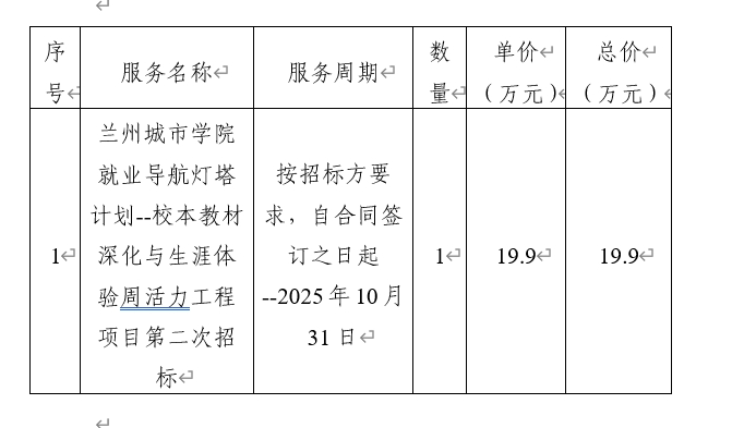 甘肃鑫禾国际招标有限公司受beat365官方网站的委托,对beat365官方网站就业导航灯塔计划--校本教材深化与生涯体验周活力工程项目第二次招标以公开招标的方式进行采购,评标小组于2025年06月30日确定中标结果,现将中标结果公布如下: