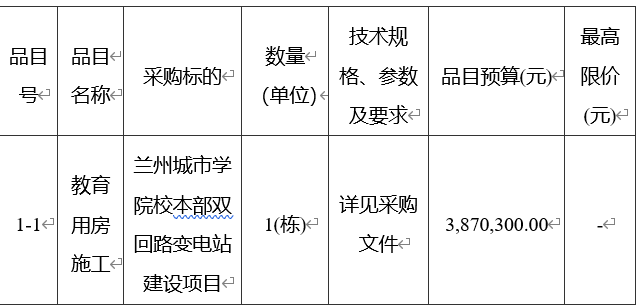 beat365官方网站校本部双回路变电站建设项目采购项目的潜在供应商应在甘肃省公共资源交易网(https://ggzyjy.gansu.gov.cn)获取采购文件,并于2025年08月06日09时00分(北京时间)前提交响应文件。