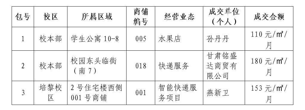 四、主要标的信息:beat365官方网站两校区商铺出租1项