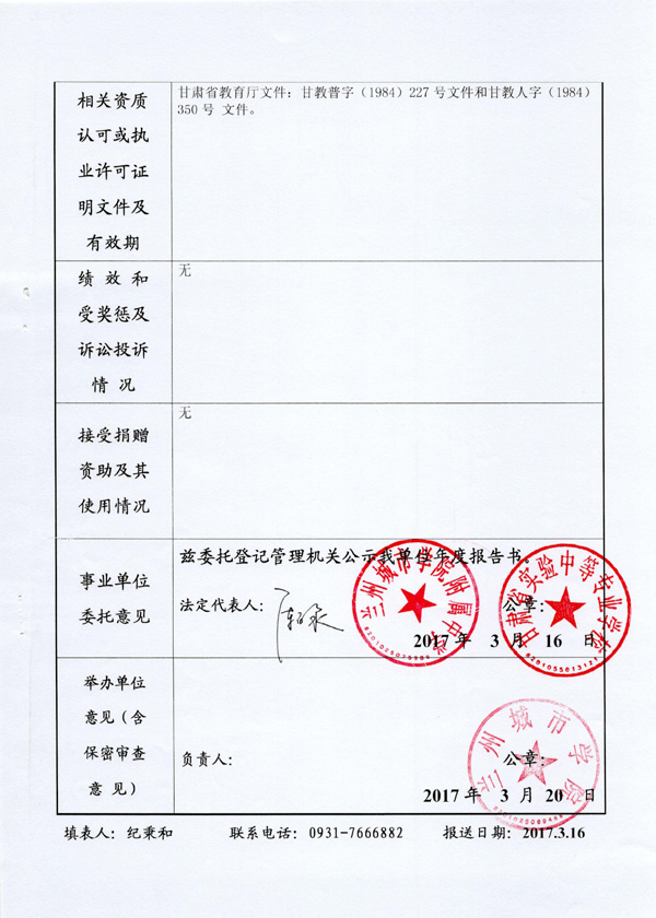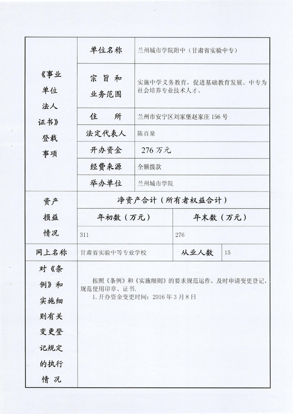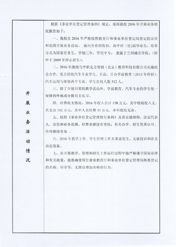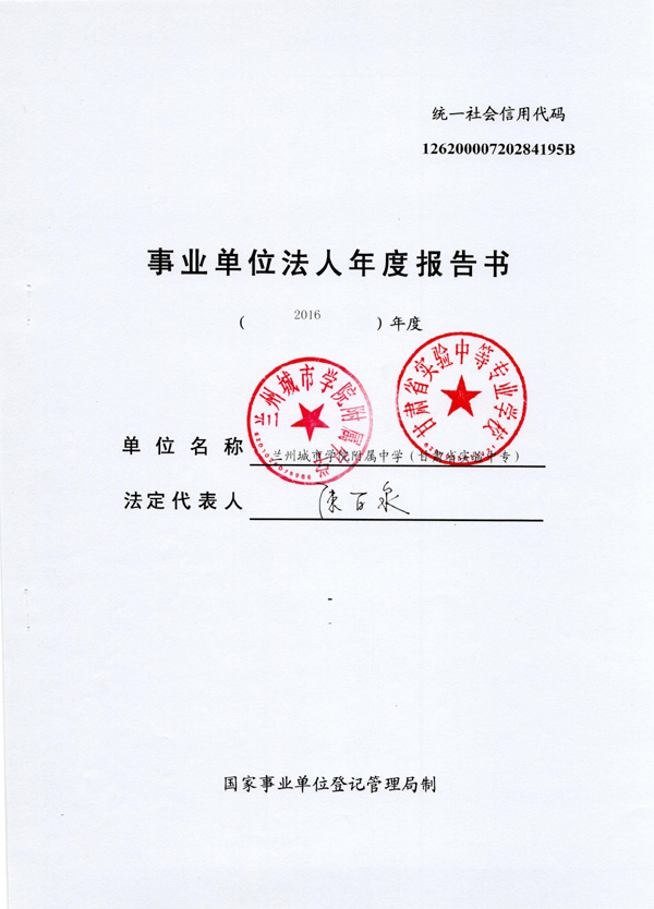 现将《beat365官方网站附属中学(甘肃省实验中等专业学校)事业单位法人年度报告书(2016年度)》予以公示,如有不实,请以书面形式向beat365官方网站人事处反映。