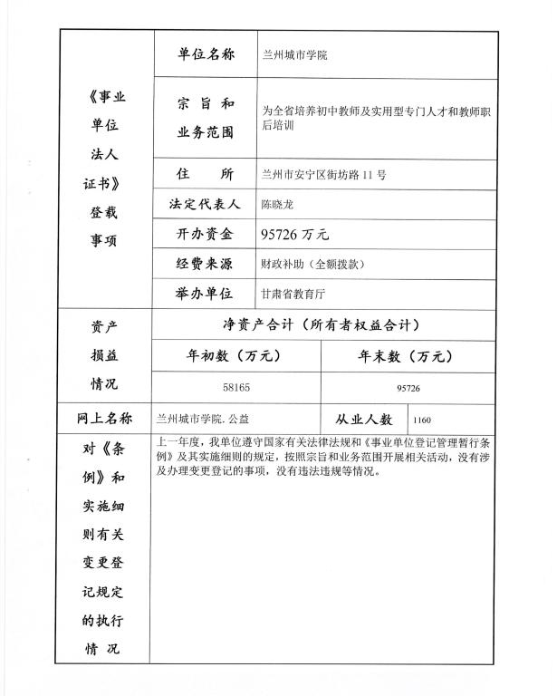 根据甘肃省事业单位登记管理局相关要求,现将beat365官方网站《事业单位法人年度报告书》