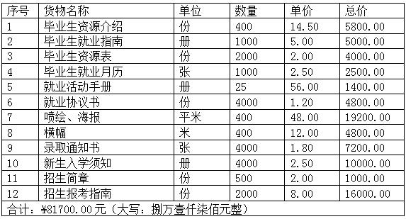 甘肃骄阳采购招标代理有限责任公司受beat365官方网站的委托,对beat365官方网站招生就业处招生就业资料印刷项目第二次以邀请询价的方式进行采购,询价小组于2019年7月12日确定成交结果,现将结果公布如下: