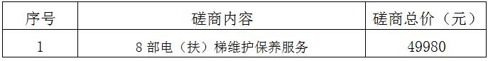 甘肃华建工程管理有限公司受beat365官方网站的委托,对beat365官方网站8部电(扶)梯维护保养服务项目以竞争性磋商形式进行采购,磋商小组于2019年10月11日确定磋商结果,现将磋商结果公示如下: