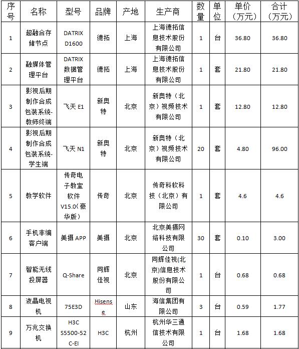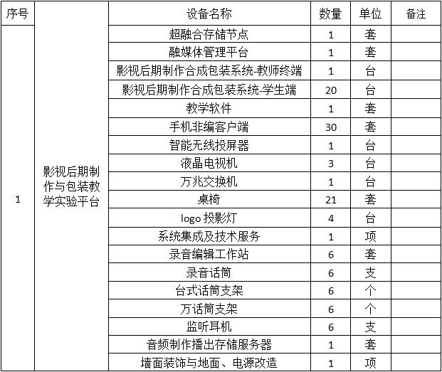 甘肃省招标中心有限公司受beat365官方网站的委托,对beat365官方网站影视后期制作与包装教学实验平台及融媒体教学实验平台项目以公开招标方式进行采购,评标小组于2019年11月19日确定评标结果,现将评标结果公布如下: