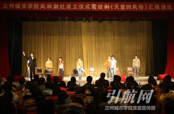 《天堂的风铃》通过讲述学生用到误伤自己的导师,导师非但没有报案,反而以德报怨,将学生送至国外留学的事件,反映了当代大学生真是的内心世界,凸显了人与人之间永恒的爱的主题,弘扬了真、善、美的校园主旋律。在汇报演出中,演员们惟妙惟肖、投入忘我的表演赢得观众阵阵热烈的掌声,经久不息。