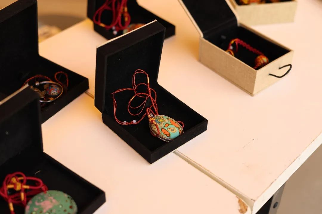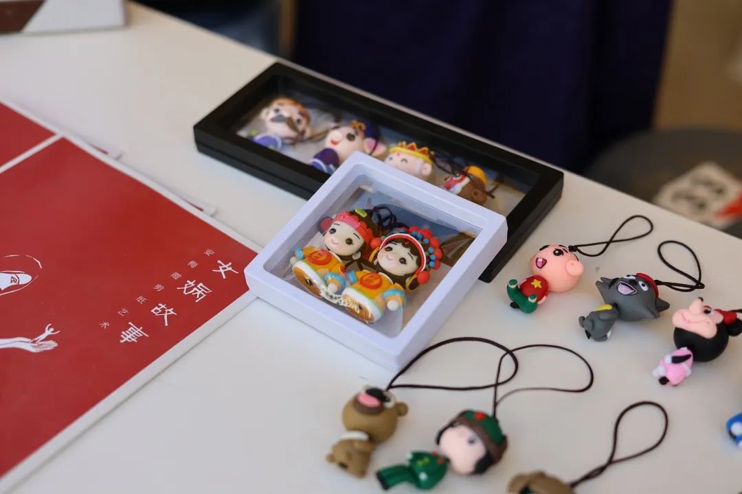 在本次展演活动中,由城市经济学院汉晨曦文化艺术品(甘肃)工作室带来的非物质文化遗产作品尤为亮眼,展台上的成州面塑、扎染工艺、马勺脸谱文创T恤、非遗文创发簪等文创产品吸引了众多同学和老师们的目光。大家认真听取汉晨曦文化艺术品工作室负责老师围绕甘肃本土文化、独具特色的马勺非物质文化遗产的传承、保护、创新机制等方面的讲解,仔细端详着一件件艺术产品,意犹未尽。