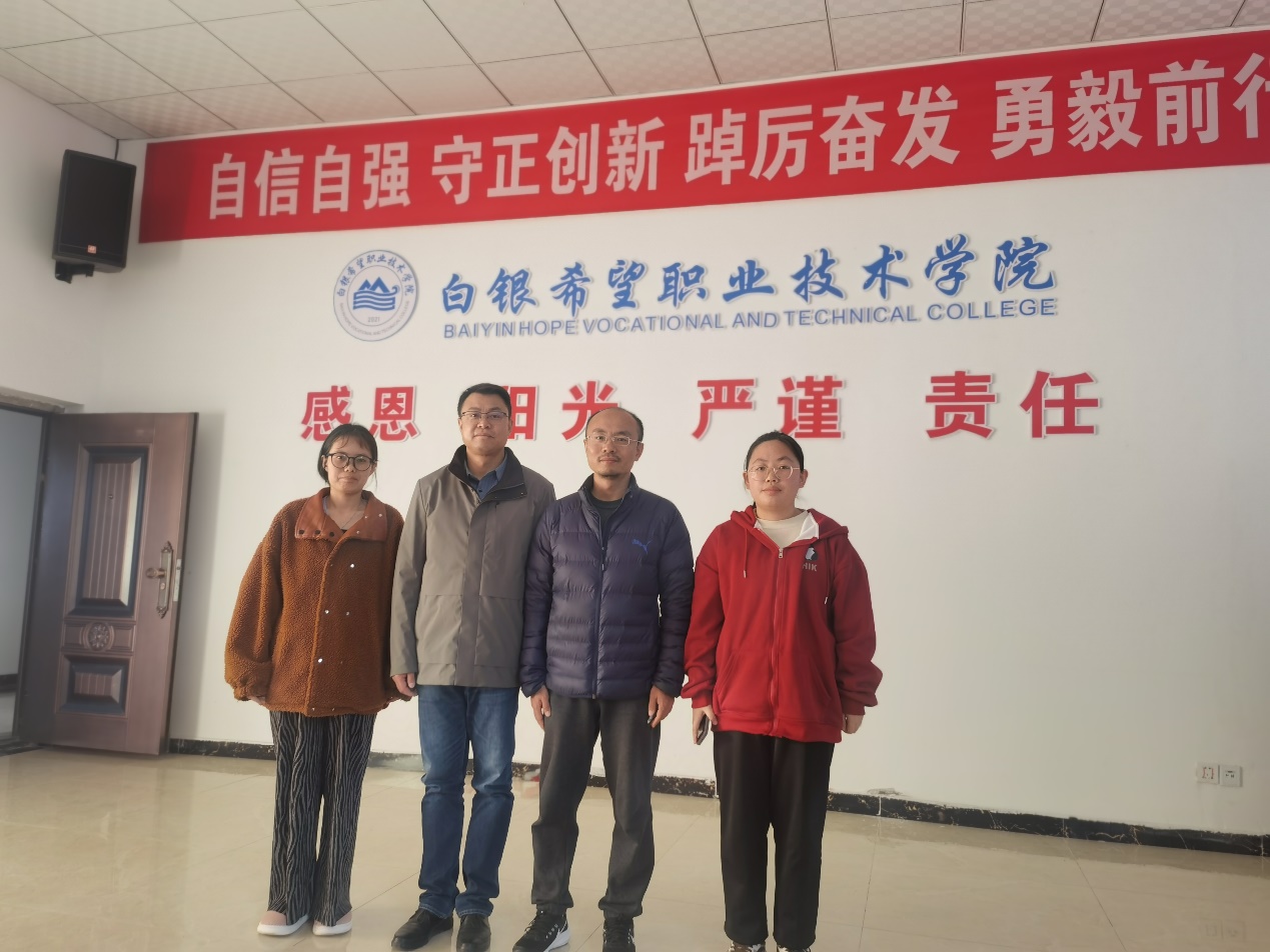 团队一行现场考察了白银希望职业技术学院,参观了实习生的工作环境,了解实习生在工作岗位上的表现,听取了实习单位对学院实习生的评价和建议,双方就继续加强合作等相关事宜进行了讨论。