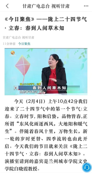 2023年在甘肃卫视讲解二十四节气