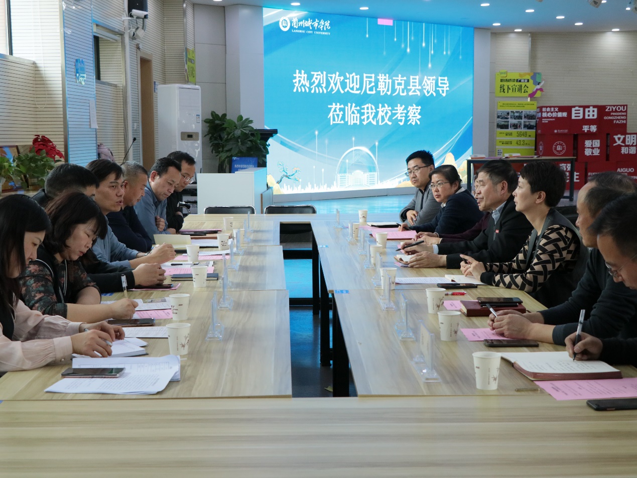 11月27日,新疆维吾尔自治区伊犁州尼勒克县党委常委副县长王迪带领县教育局、人社局考察组一行来校洽谈校地合作事宜,并开展校园招聘工作。校党委常委、副校长牟录贵出席会议,招生就业处、马克思主义学院、音乐学院、体育学院、文史学院、化学工程学院相关负责人参加会议。