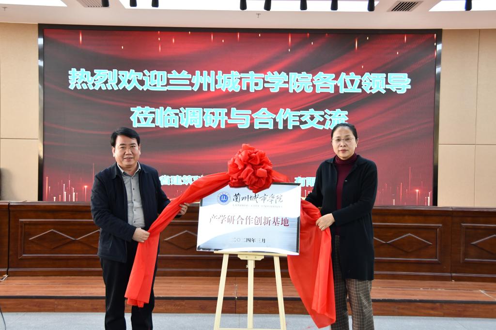 曹洁、韩高年与企业领导为产学研合作创新基地、实习就业基地揭牌。