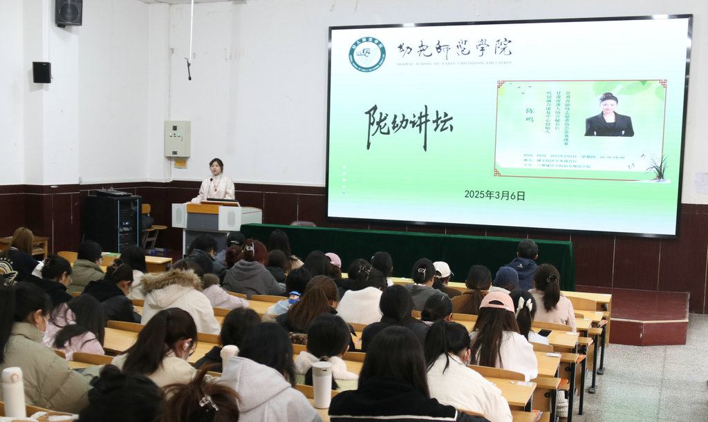 为发挥优秀校友榜样引领作用,切实转变毕业生就业观念,促进其尽快就业,36日下午,幼儿师范学院邀请优秀校友、兰州市七里河区鸣创融合康复中心创始人陈鸣女士来校开展访企拓岗交流及招聘宣讲。学院领导班子、相关教师及2025届毕业生220余人参加活动。
