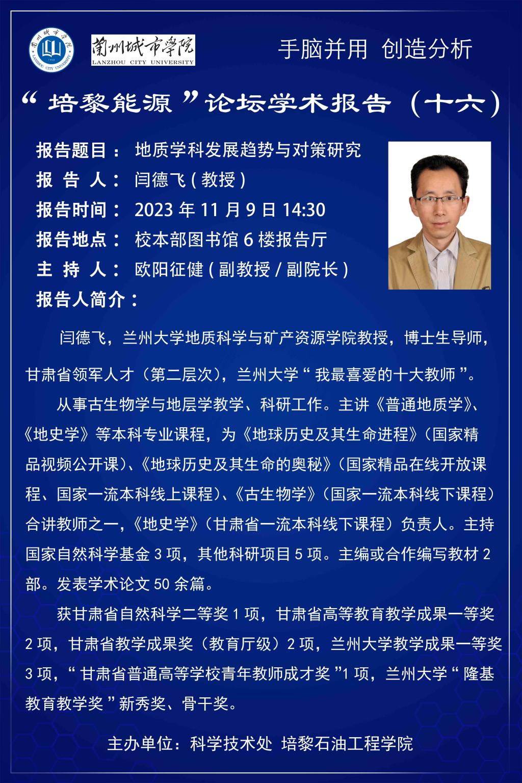 【学术公告】兰州大学教授闫德飞将来beat365作学术报告