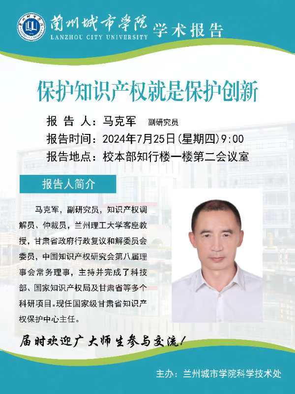 应科学技术处邀请,甘肃省知识产权保护中心主任马克军将来beat365作学术报告。具体事宜公告如下: