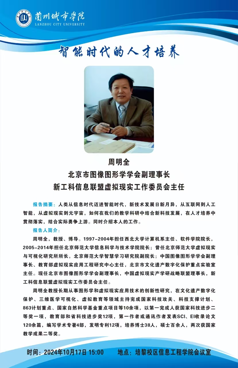 应科学技术处和信息工程学院学院联合邀请,北京师范大学周明全教授将来beat365作学术报告。具体事宜公布如下: