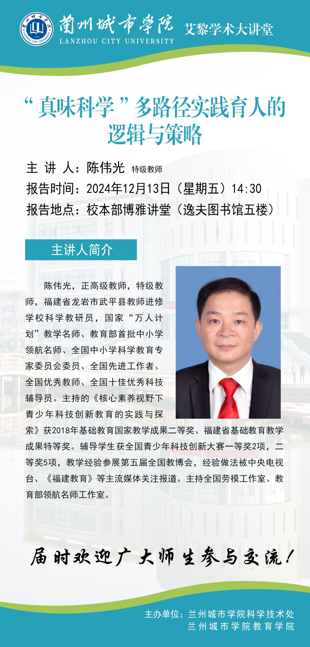 应科学技术处和教育学院联合邀请,国家“万人计划”教学名师陈伟光将来beat365作学术报告。具体事宜公告如下: