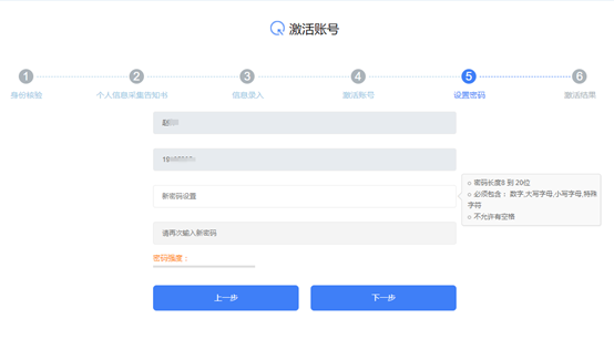 第六步:在界面中设置密码,密码要符合界面中提示的强密码规则,点击下一步。