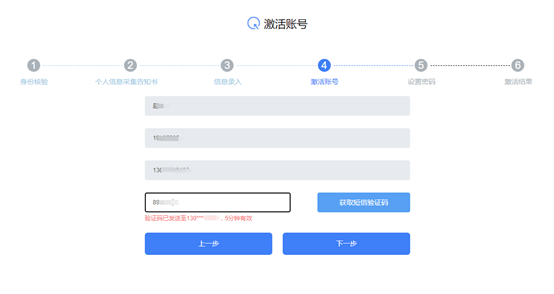 第五步:点击获取短信验证码,并将手机收到的短信验证码输入到界面中,点击下一步。