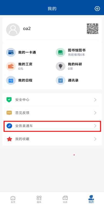 登录后,右下角“我的”-“业务直通车”-“新一卡通”-点击下方二维码。