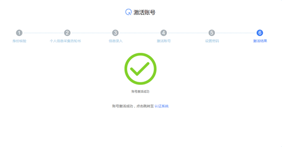 第七步:在提示激活账号成功界面中,点击认证系统,即可进入统一身份认证界面。