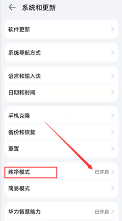 (2)进入设置,点击“系统和更新”→“纯净模式”