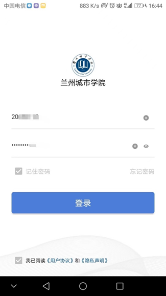 打开APP后在界面中输入工号(学号)及密码,点击登录。