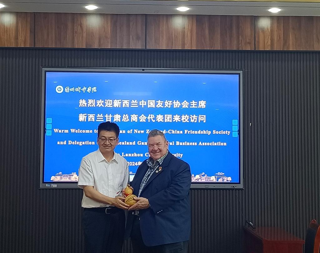 7月5日,新西兰中国友好协会主席黎开盛(Chris Mark Lipscombe)和新西兰甘肃总商会会长梁军伟一行来校访问交流。校党委书记曹洁会见来访嘉宾并陪同参观,校党委副书记、校长韩高年出席座谈会并致辞,校党委常委、副校长张发旺主持会议。