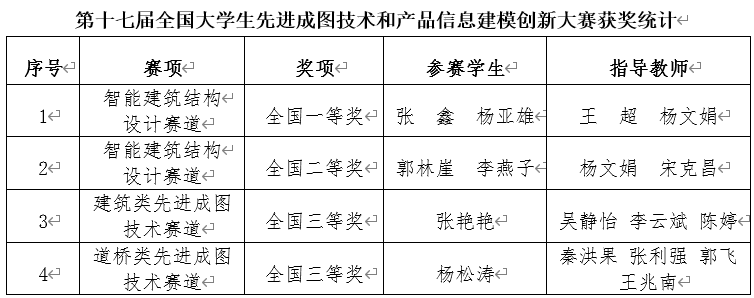 近日,第十七届全国大学生先进成图技术和产品信息建模创新大赛全国总决赛在贵州大学举办。beat365环境与城市建设学院参赛团队喜获建筑类智能建筑结构设计赛道全国一等奖1项、全国二等奖1项,建筑类先进成图技术赛道全国三等奖1项,道桥类先进成图技术赛道全国三等奖1项。