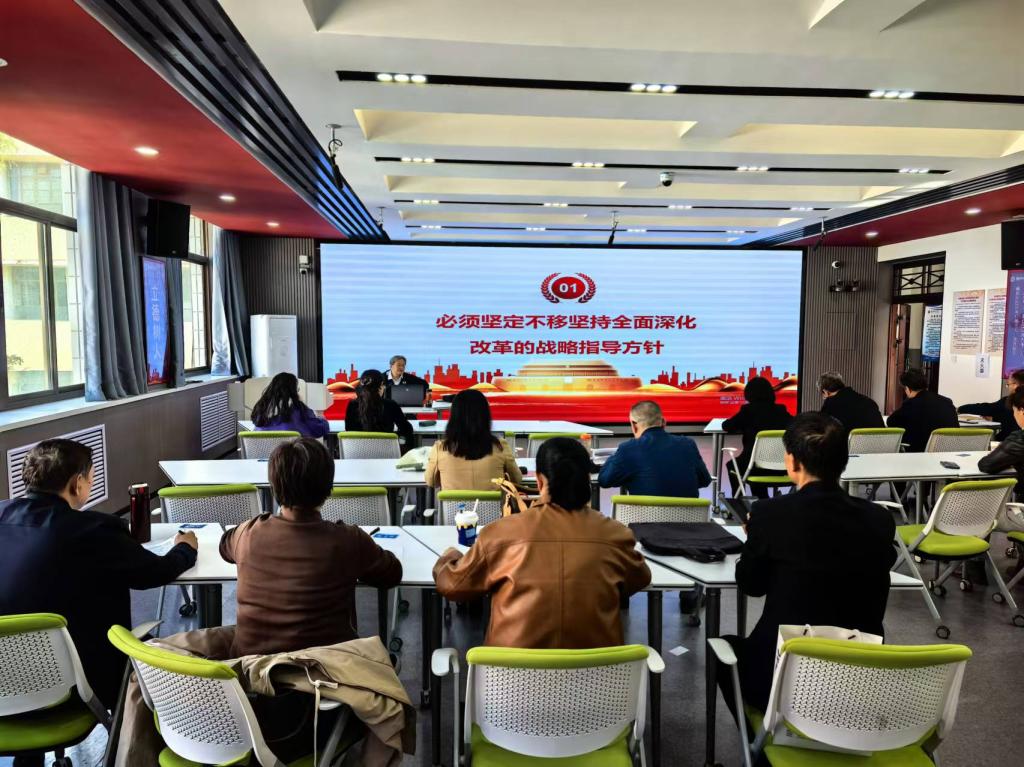 范鹏从坚持全面深化改革的战略指导方针、紧紧围绕全面深化改革的总体战略目标、用好改革开放在新时代的新经验、进一步落实全面深化改革的系统部署与整体要求、坚定不移全面加强党对进一步全面深化改革的领导等5个方面,结合习近平总书记视察甘肃重要讲话精神,深入解读了党的二十届三中全会关于进一步全面深化改革的深刻内涵和时代特征,深刻阐释了新时代坚持全面深化改革的理论意义和实践意义,充分明确了推进全面深化改革的根本宗旨和实践路径。他希望,学院思政课教师立足陇原大地,将党的二十届三中全会精神同甘肃发展实际相结合,努力产出高质量的科研成果,助力甘肃高质量发展。