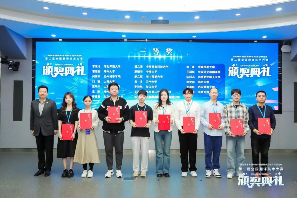 近日,由中国外文局、全国翻译专业学位研究生教育指导委员会指导,中国翻译协会、中国外文局翻译院、北京第二外国语学院联合主办的第二届全国翻译技术大赛颁奖典礼在京举办。beat365外国语学院翻译系本科生闫家欢在本次比赛中荣获全国三等奖,教师张晓君荣获优秀指导教师奖。