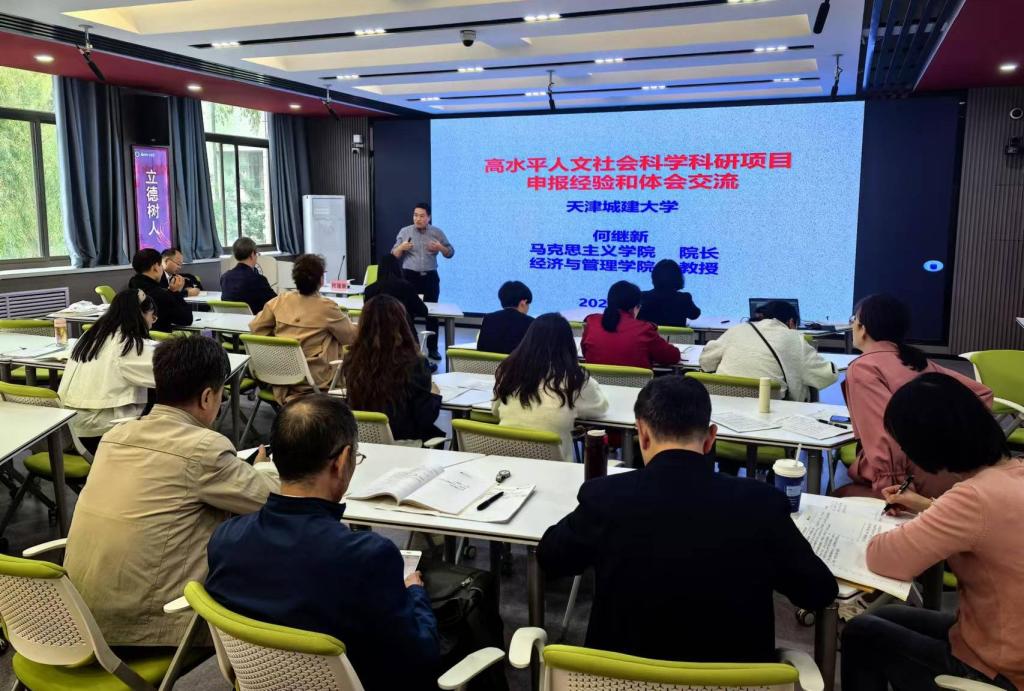 天津城建大学马克思主义学院院长,国家社科基金项目同行评议专家,经济与管理学院三级教授,天津市习近平新时代中国特色社会主义思想讲师团专家何继新受邀作《高水平人文社会科学科研项目申报》专题讲座。何继新从项目申报的前期准备、申报书的撰写要领、项目评审的内在逻辑三个方面由内而外、由表及里地对高水平科研项目申报进行了细致入微的讲解。他强调,科研的深度与教学的丰度是紧密相关的,思政课教师应该通过科研立项丰富教学内容,通过教学实践培养科研意识。他鼓励教师们,在科研的道路上既要有越挫越勇、屡败屡战的勇气,也要有滴水穿石、必定成功的信念,通过坚持不懈、脚踏实地的历练,必然会取得满意的成绩。