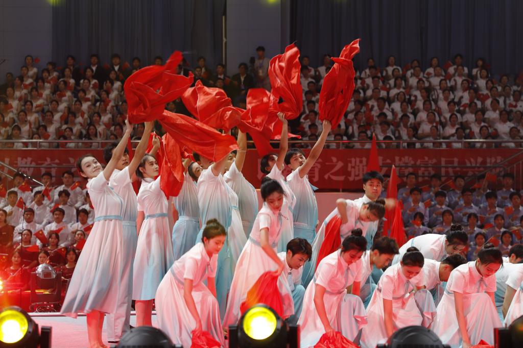 为隆重庆祝中华人民共和国成立75周年,大力营造爱国奉献、团结奋进的浓厚氛围,引导广大师生进一步厚植爱国情、砥砺强国志、躬身报国行,由省委教育工委、省教育厅主办的甘肃省教育系统庆祝中华人民共和国成立75周年“百万师生唱响祖国”爱国歌曲展演活动于9月28日在兰州文理学院举行。beat365党委常委、副校长李慕堂出席活动,党委宣传部负责人、音乐学院师生代表150余人参加活动。
