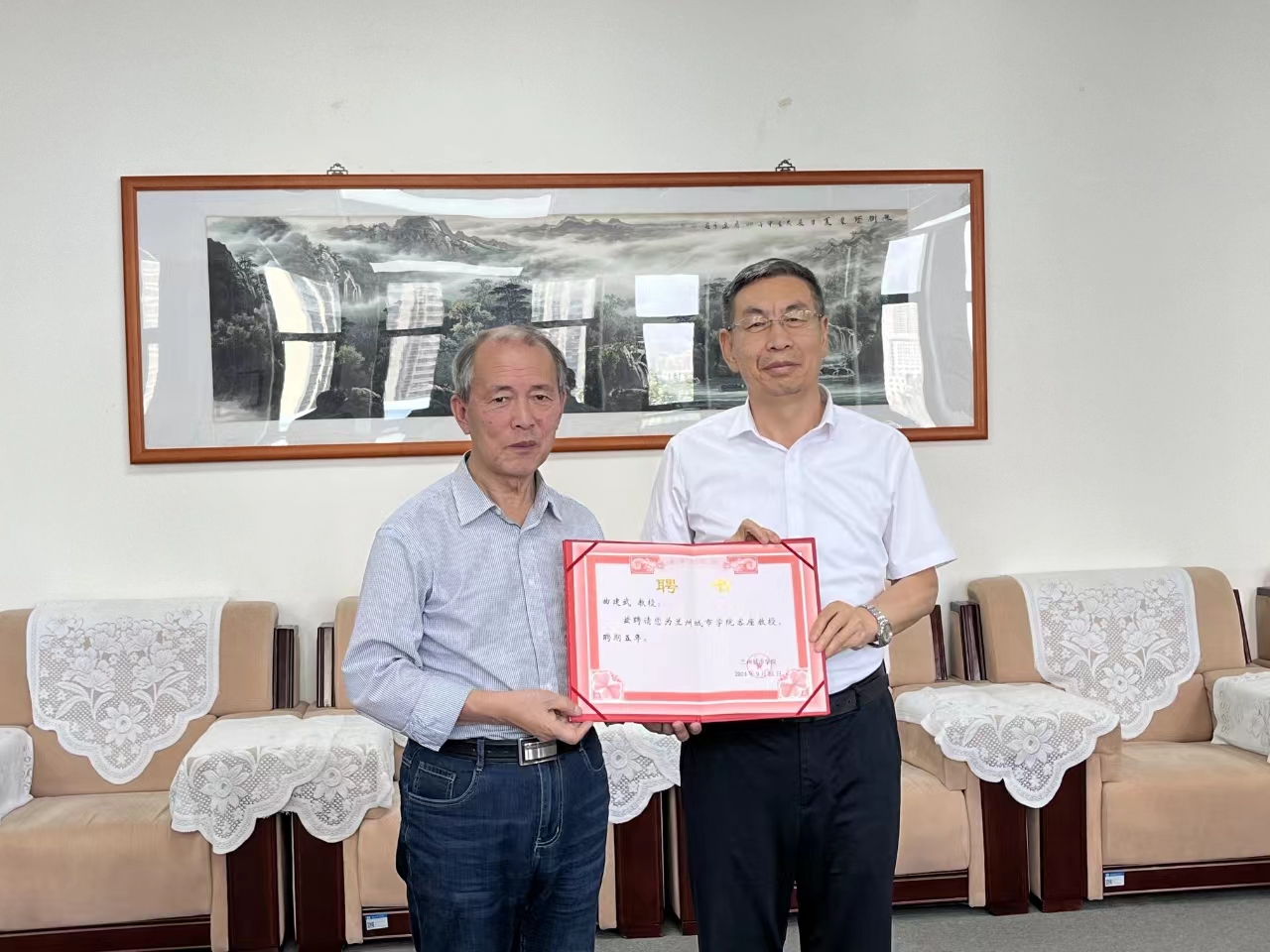 报告会期间,学校在图书馆会议室举行了“客座教授”聘任仪式,校党委常委、副校长李慕堂向曲建武教授颁发“客座教授”聘书。