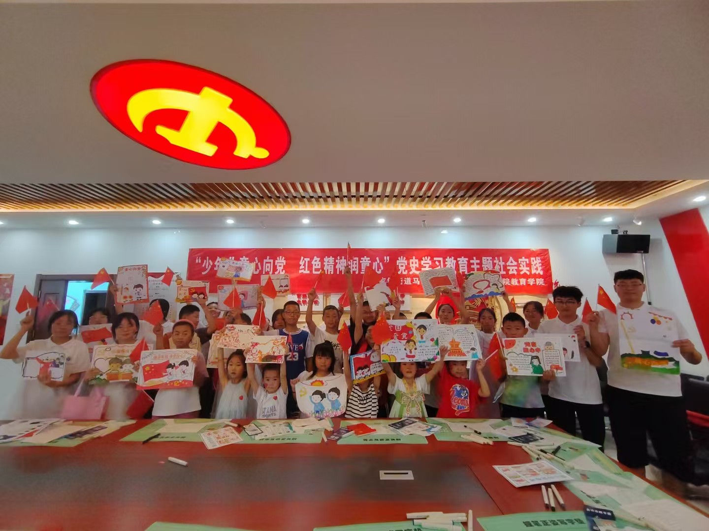 教育学院“少年儿童心向党 红色精神润童心”党史学习教育主题社会实践团,作为届次化、品牌化实践团队,今年暑假继续深入社区,与孩子们共绘爱党、爱国之情。