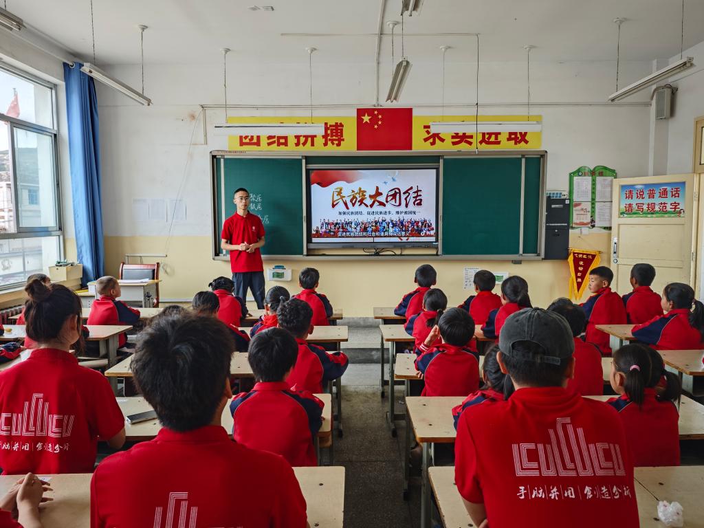 信息工程学院赴康乐县铸牢中华民族共同体意识实践团与当地小学生积极互动,将民族团结的种子埋进孩子们心间。