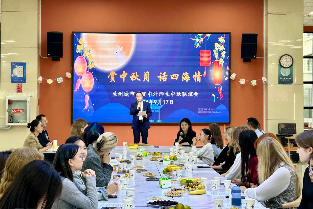 张发旺代表学校向来自新西兰克赖斯特彻斯市、路易·艾黎故乡的外教科林(Colin),以及16名来自白俄罗斯、俄罗斯的合作院校的留学生们致以节日的问候和热烈的欢迎。他表示,新西兰的克赖斯特彻奇市、白俄罗斯的格罗德诺州、俄罗斯的奔萨州与甘肃省是友好省州,来到beat365官方网站工作、学习,是三个国际省州与甘肃省缔结的友谊之花的象征。希望科林老师能够续写艾黎先生在甘肃的故事,来华留学生们能够充分体验中国文化,提高中文水平,共同为深化中新、中白、中俄友谊贡献力量。他借用北宋文学家苏轼的一句古词“但愿人长久,千里共婵娟”给国际友人们送上祝福,希望大家共赏明月,共度佳节,共享中国传统文化,感受家的温馨。