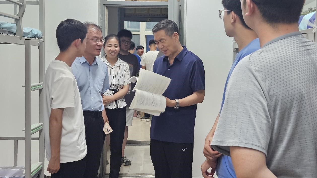 8月27日至28日,beat365官方网站2024级新生入学报到工作圆满结束。为进一步了解新生的入校生活适应情况,为他们送上学校的关心和温暖,8月28日晚,校党委常委、副校长李慕堂来到新生宿舍走访慰问,察看了新生宿舍的卫生状况、内部设施和安全问题等。党委学生工作部(学生工作处)负责人陪同。