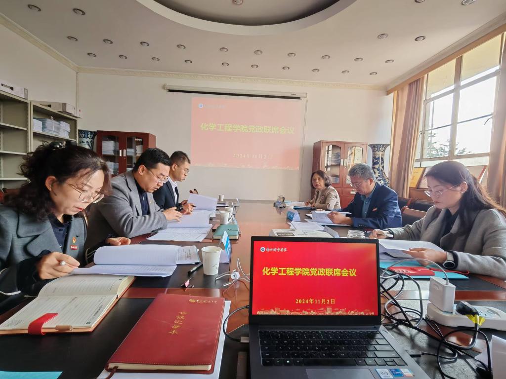 11月2日上午,化学工程学院召开党委会会议、党政联席会议,校党委常委、党委组织部部长陈伟列席指导,学院党政负责人分别主持会议。