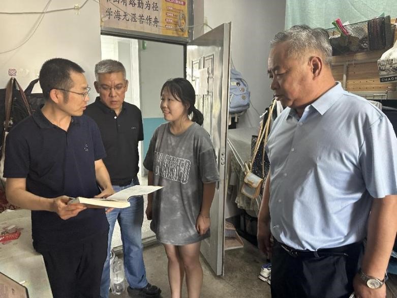 传媒学院负责人和考研留校临时班主任及学工办负责人走进宿舍走访看望暑期因考研留校复习的学生。走访中老师们详细询问了大家的住宿环境、生活作息以及面临的学习困难。他们叮嘱同学们要注意防暑以及个人卫生和宿舍安全,保持良好的生活习惯,合理安排休息时间,以充沛的精力投入到考研复习中。考研留校的临时班主任与同学们交流了考研复习的进度和计划,针对同学们在复习过程中遇到的问题和困惑,也给予了耐心的解答和指导。通过此次慰问,学院进一步了解考研学生的学习生活状况,为他们提供了更加精准的服务和保障。同时坚定了全体考研同学的信心,希望同学们以最佳状态复习备考,迎接挑战!