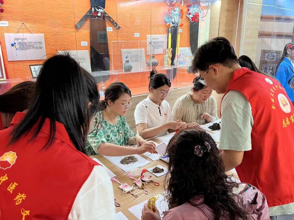 随后,进入了香囊DIY环节。在志愿者的指导下,居民们纷纷动手制作自己的中医药香囊。他们仔细挑选中药材,按照步骤进行混合、搅拌、包装,最后制作出一个个精美且具有药用功效的香囊。在这个过程中,居民们不仅感受到了中医药文化的独特魅力,也学到了许多实用的中医药知识。