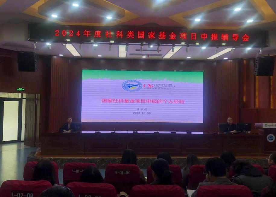 10月30日下午,学校召开了2024年度社科类国家基金项目申报辅导会。邀请兰州大学教授朱永彪作了题为《国家社科基金项目申报的个人经验》的专题报告。社科类二级学院院长和主管科研工作副院长、高级职称教师及博士、科学技术处全体工作人员等130余人参会。