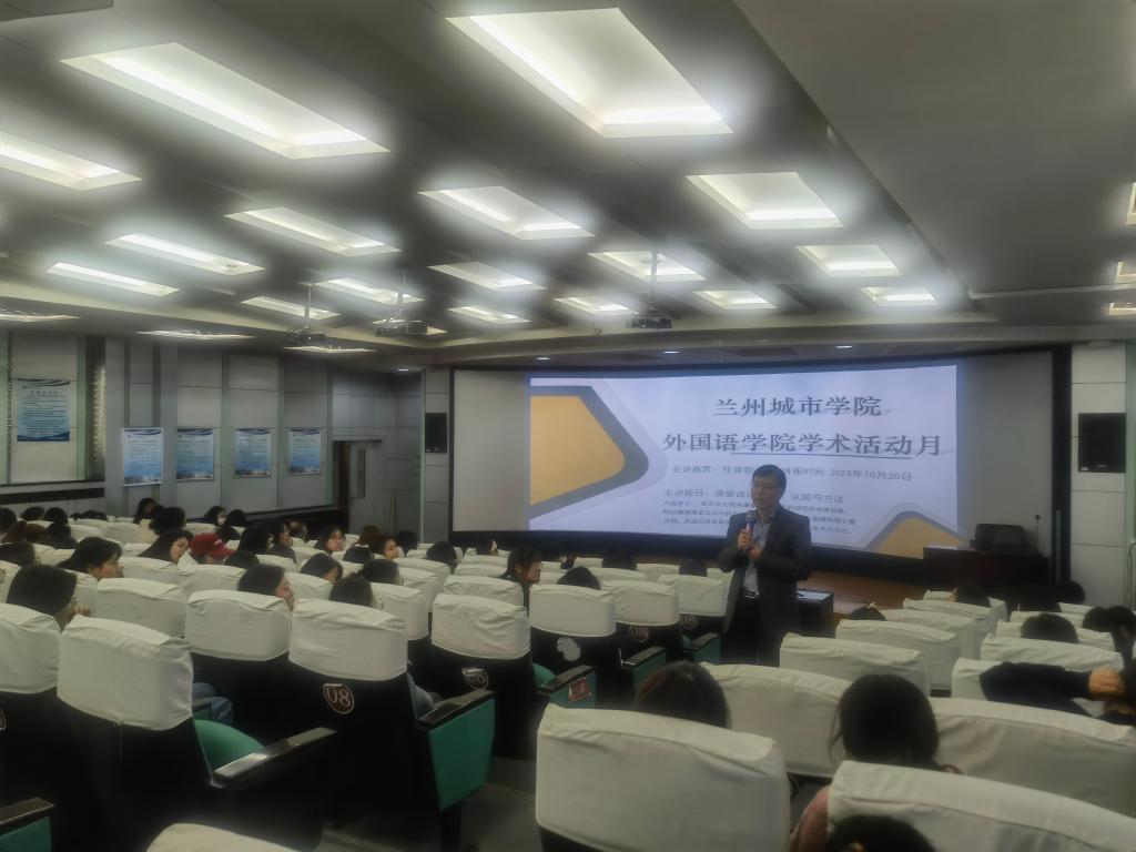 10月20日下午,外国语学院特邀兰州理工大学外国语学院教师任育新为全院教师及2020级学生作了题为《课堂话语研究:议题与方法》的学术讲座。
