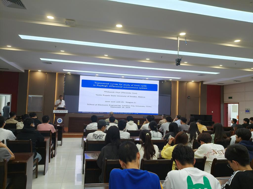 9月19日下午,白俄罗斯格罗德诺杨卡.库帕拉国立大学Aliaksandr Hryn教授、Eduard Musafirov教授在培黎图书馆6楼学术报告厅分别作了“Rayleigh微分自治系统极限环横向曲线研究”和“Mironenko反射函数法研究常微分方程组”的两场学术报告。电子工程学院和信息工程学院120余名师生参加了该报告。
