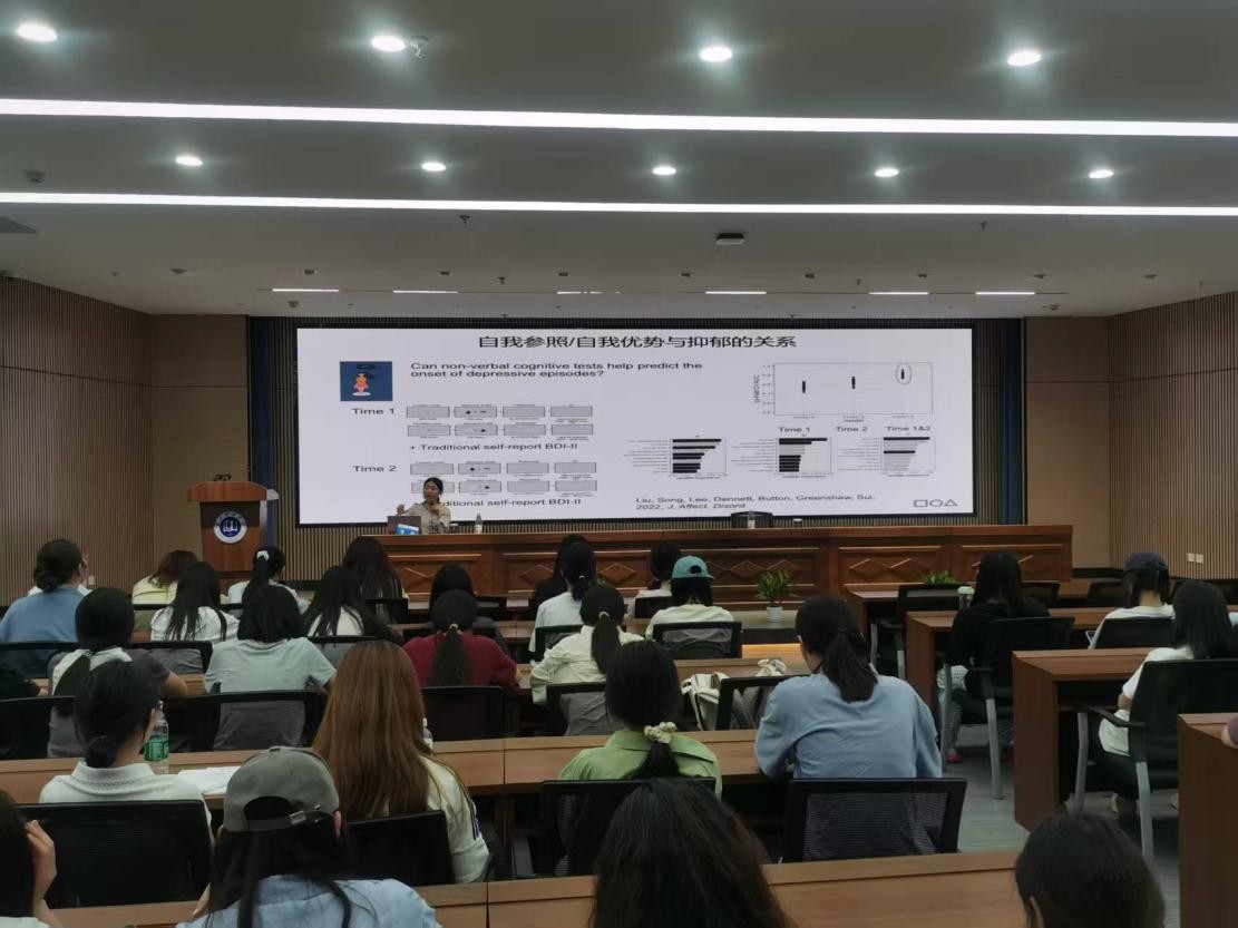 互动环节气氛热烈,与会师生就自我与健康、自我提升等话题踊跃提问,隋洁均给予了专业而详尽的解答。学院负责人在总结中指出,隋洁的讲座既站位前沿,又通俗易懂,内容完整紧凑,会场气氛活跃,拓展了师生们的学术视野,激发了学术兴趣,也为心理学研究范式和技术手段提供宝贵经验,加深了师生对心理学科的理解和认识。