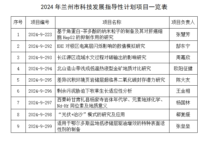 近日,兰州市科学技术局公布