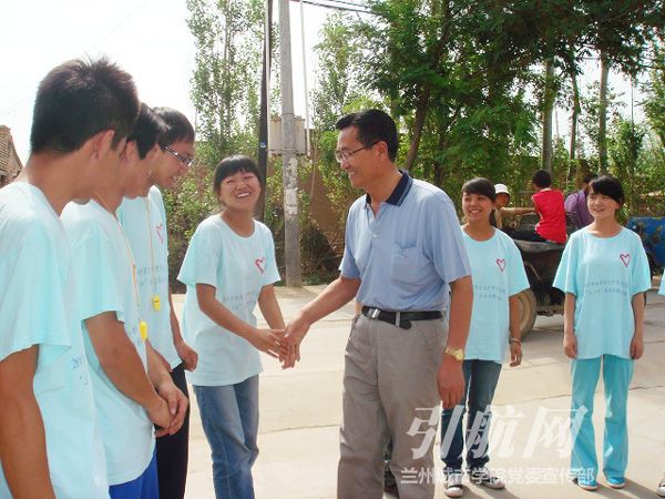 7月24日 ,校党委书记王兴隆在社会管理学院、校团委负责人的陪同下,来到定西市通渭县襄南乡文堡村,看望在这里开展暑期“三下乡”社会实践的队员们,并参加了捐赠仪式。他代表beat365官方网站全体师生表达了对文堡小学全体师生的诚挚慰问,并细心嘱咐实践小分队队员务必将实践工作做到实处,“蹲下来”与学生们真心交流。孩子们在捐赠仪式上领到了文具,露出了开心的笑脸。襄南乡学区马校长对beat365的捐赠和实践活动表达了真挚的谢意。