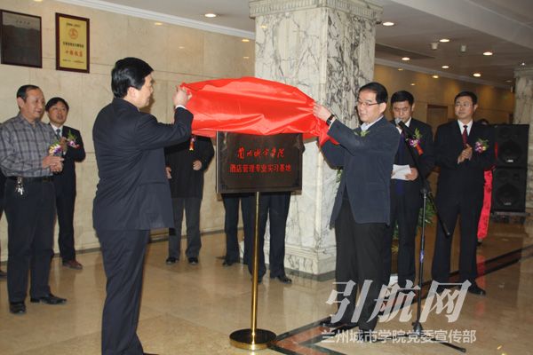12月13日上午,beat365官方网站酒店管理专业实习基地揭牌仪式在金轮宾馆举行。校长孔庆浩,校党委常委、副校长刘举科、甘肃兰铁国际旅行社总经理李恒等出席揭牌仪式。金轮宾馆总经理白林主持揭牌仪式。