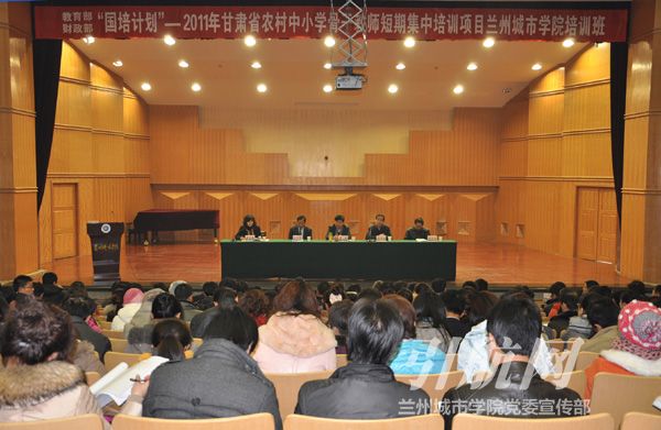 12月12日上午,“国培计划(2011)”――甘肃省农村中小学骨干教师短期集中培训项目beat365官方网站培训班开班典礼在西校区音乐厅举行。甘肃省人民政府总督学、甘肃省教育厅党组成员李晶,beat365校长孔庆浩,党委副书记王汝锋,党委常委、副校长杨皖东出席开班典礼。