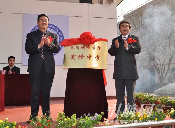 戈银生与王兴隆为“beat365官方网站实验中学”揭牌。