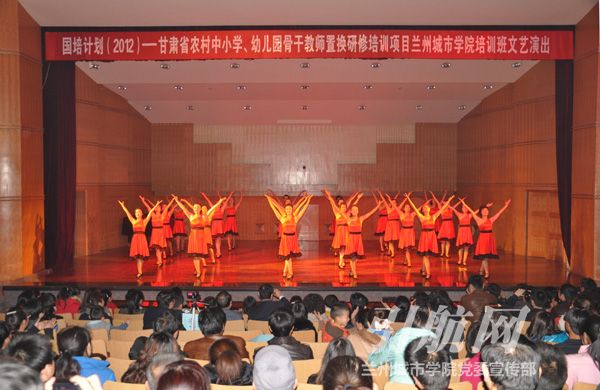 11月16日晚,“国培计划(2012)”甘肃省农村中小学及幼儿园骨干教师置换脱产研修项目beat365官方网站培训班学员文艺演出在西校区音乐厅举行。校党委副书记王汝锋,校党委常委、副校长杨皖东等出席。承担今年培训任务的二级学院负责人、工作人员和陪训班全体学员等观看了演出。